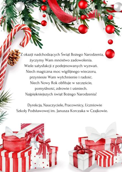 20 grudnia 2024 Aktualności KONCERT KOLĘD I PASTORAŁEK POŁĄCZONY Z JASEŁKAMI 2024🎄🌲🎄 Zapraszamy do obejrzenia filmu z koncertu i jesełek. https://www.facebook.com/SPCzajkow/videos/600907502433648 Czytaj więcej
